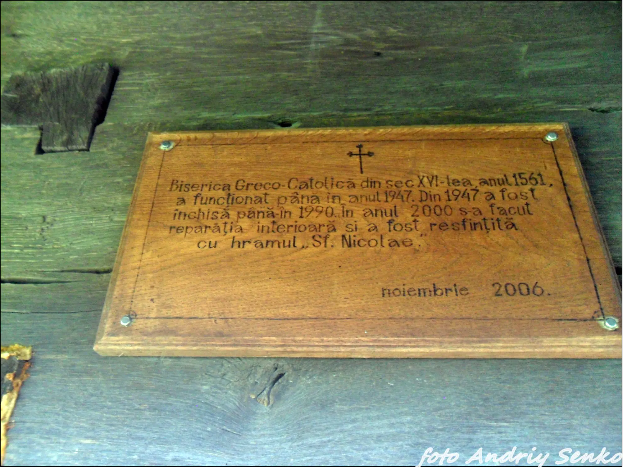 Дерев'яна церква у цьому румунському селі постала у 1604 році. А за іншими даними у 1561 р. На пам'ятній таблиці на стіні церкви написано (румунською мовою) дату 1561, також вказані ще дві дати: 1947 і 1990 (ймовірно, в той період церква зачинена). В радянський період церкву перетворили на музей, тому наприкінці 1960-х років святиню ремонтували. З початку 1990-х років церквою користується греко-католицька громада.