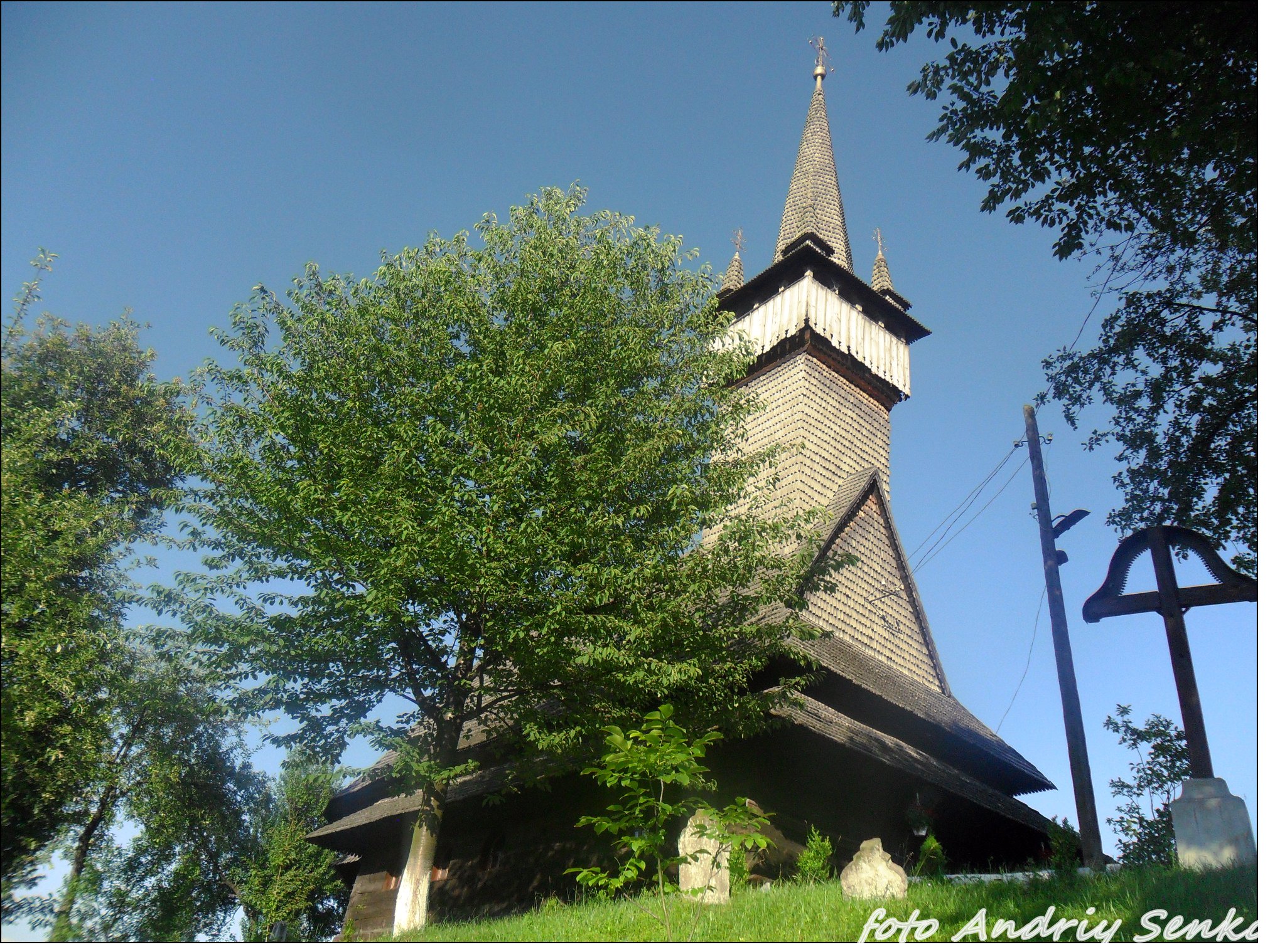 Церква належить до дуже вузького кола кількох найдавніших дерев'яних пам'яток Закарпаття. Стоїть на пагорбі над селом, двозрубна, з дубових брусів. Вівтарем орієнтована до північного сходу. Дахи, стіни і шпиль вежі покриті дубовим лемехом. Поблизу церкви збереглася маленька дерев'яна дзвіничка з одним дзвоном. На схилах пагорбу, де стоїть церква, можна побачити залишки давнього цвинтаря. Одна з найкрасивіших дерев'яних церков Закарпаття!!!